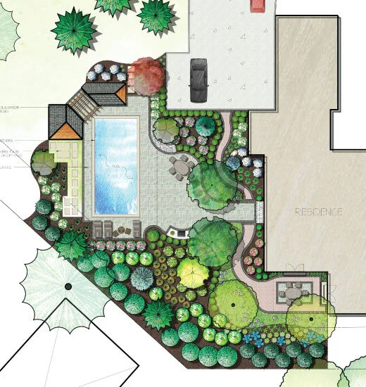 Our landscape designer drafts a hand-drawn concept to illustrate the layouts and landscape solutions. We strive to provide the most thoughtful design solutions.